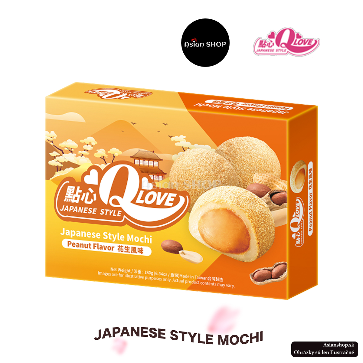 QLOVE Mochi arašidové 180g – jemné mochi plnené sladkou arašidovou náplňou