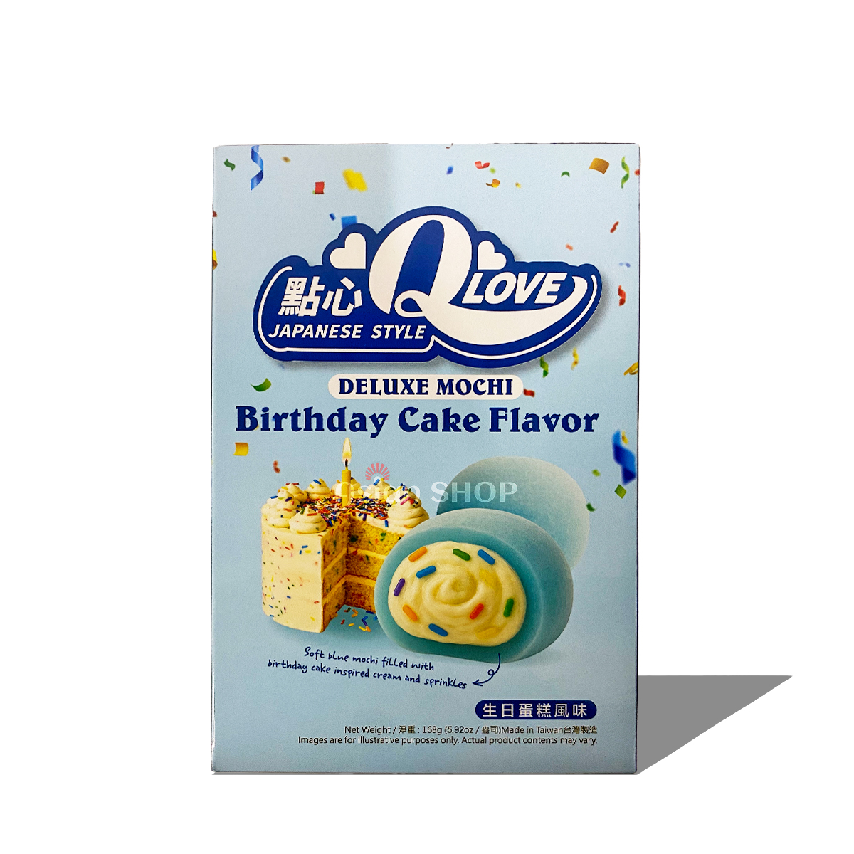 QLOVE Mochi narodeninová torta 168g – sladké mochi s krémovou „birthday cake“ náplňou.